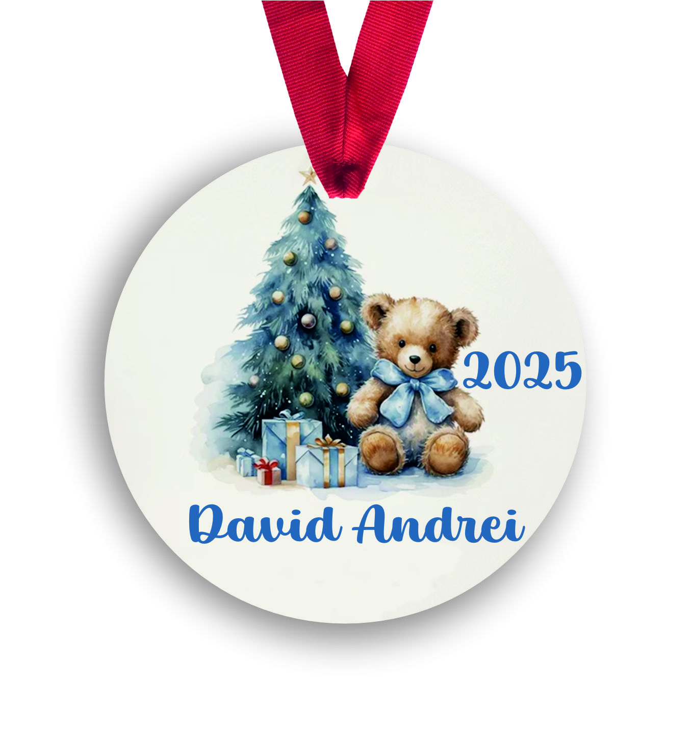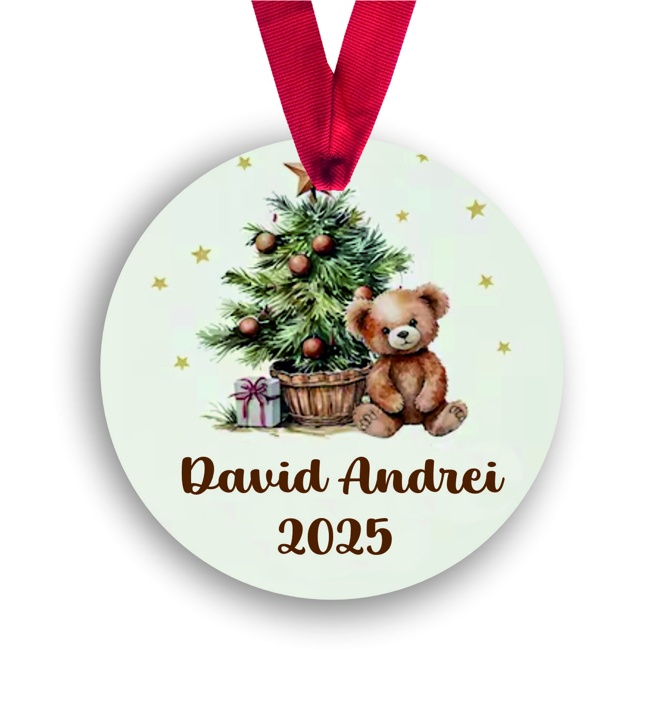 Glob personalizat cu nume din placaj MDF de 3 mm, 8 cm diametru, imprimat pe o singură parte. Cadoul perfect pentru Crăciun, ideal pentru decorarea bradului sau surprize personalizate! 🎄