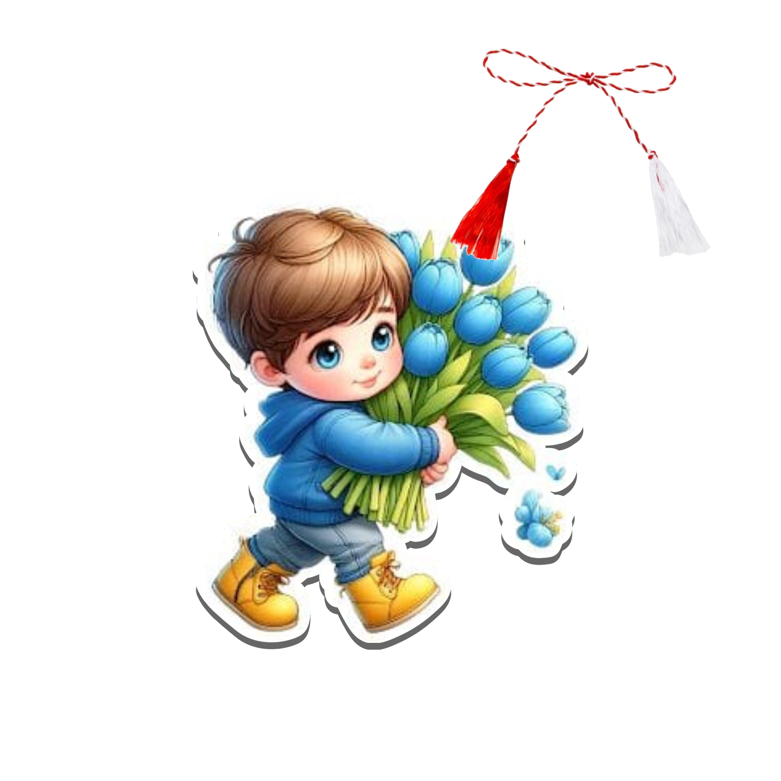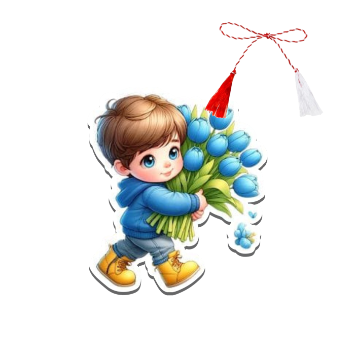 Martisor personalizat baiat cu lalele albastre