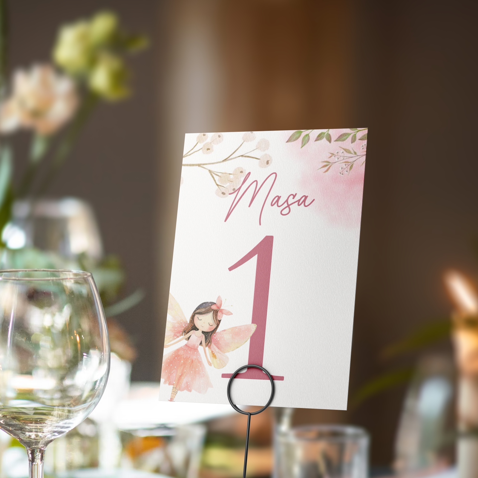 Număr de masă personalizat pentru botez, realizat în aceeași temă vizuală cu plicurile de bani, meniurile și place card-urile din colecția aleasă. Este conceput pentru a fi ușor de observat de invitați și pentru a menține un decor unitar pe toate mesele.