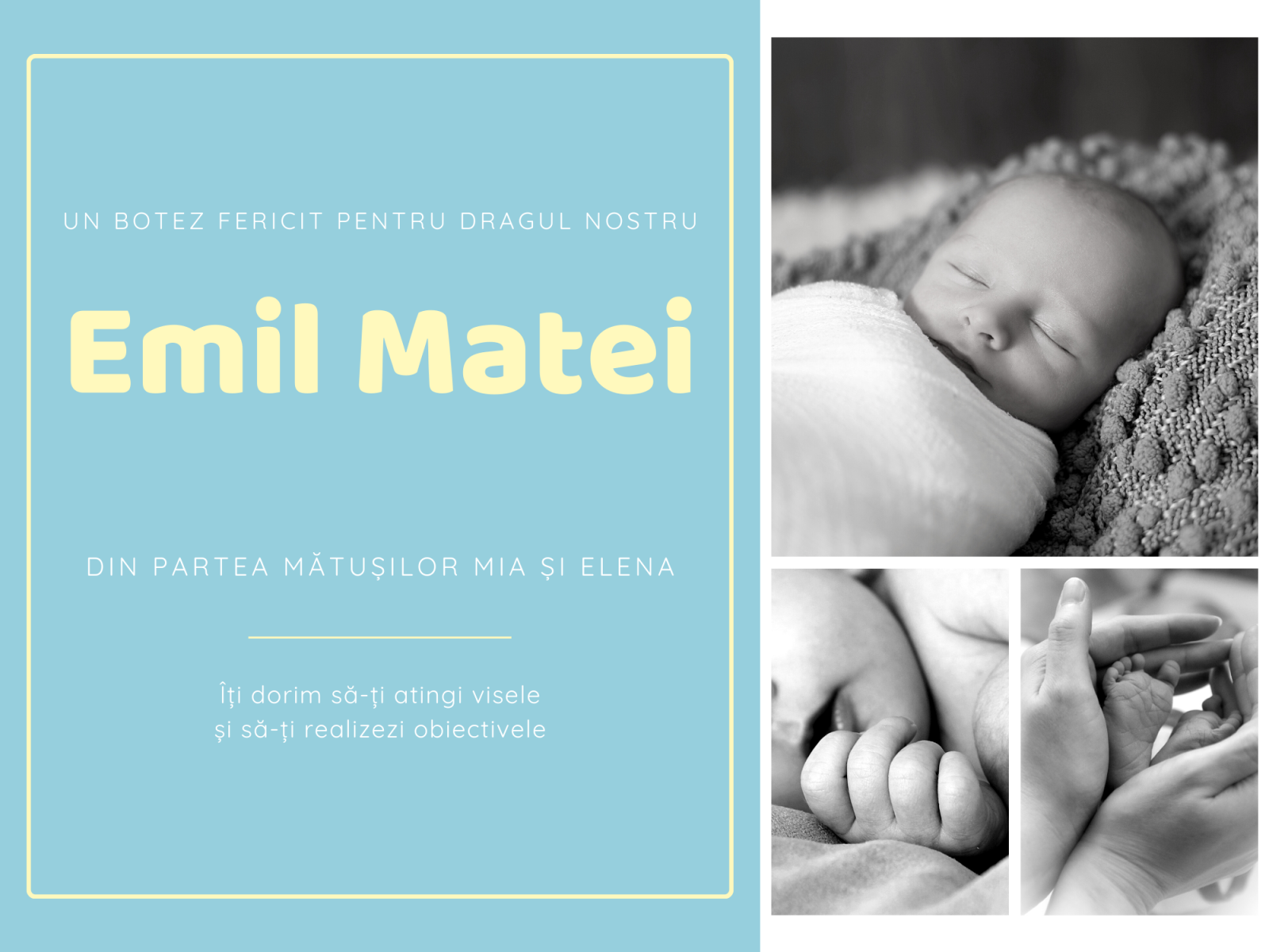 Marchează un moment cu adevărat special cu tabloul personalizat cadou de botez, creat din 3 fotografii alese de tine și un mesaj care păstrează vie emoția acestei zile importante.