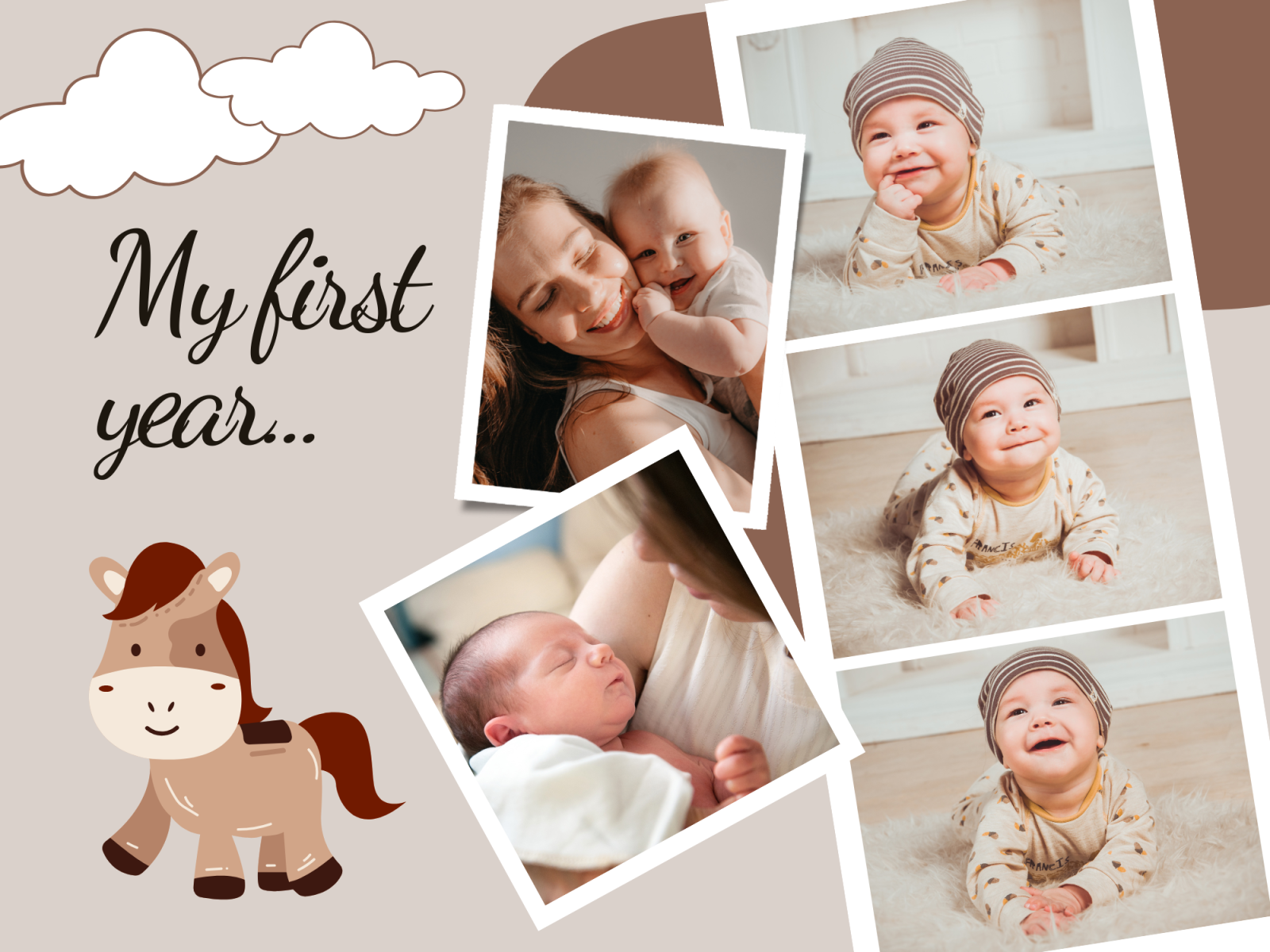 Păstrează aproape cele mai frumoase momente din primul an de viață al copilului tău cu tabloul personalizat „Primul meu an”, creat din 6 fotografii alese de tine și un mesaj care spune povestea primelor etape.